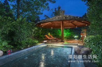 加料区里有玫瑰池、当归池、人参池等养生温泉,都配有文字说明,你可以根据自己的需求喜好来选择;附近又有鱼疗池,要单独收费,15元/人。动感区的多个泡池会喷涌温泉水,可以坐着或躺着来享受水柱按摩。情侣区里有虞美池、鸳鸯池、同心池等,有的被竹林包围,有的在山石后面,具有一定的私密性。而自然泡池就更接近山林,置身其中无比惬意。