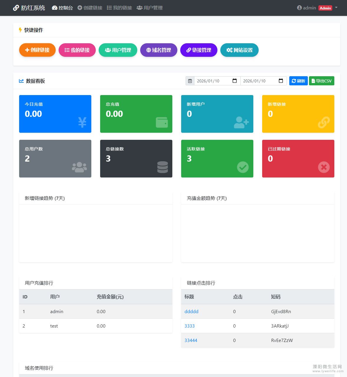 - 可视化看板 :用户增长趋势、链接访问统计、收入报表一目了然。