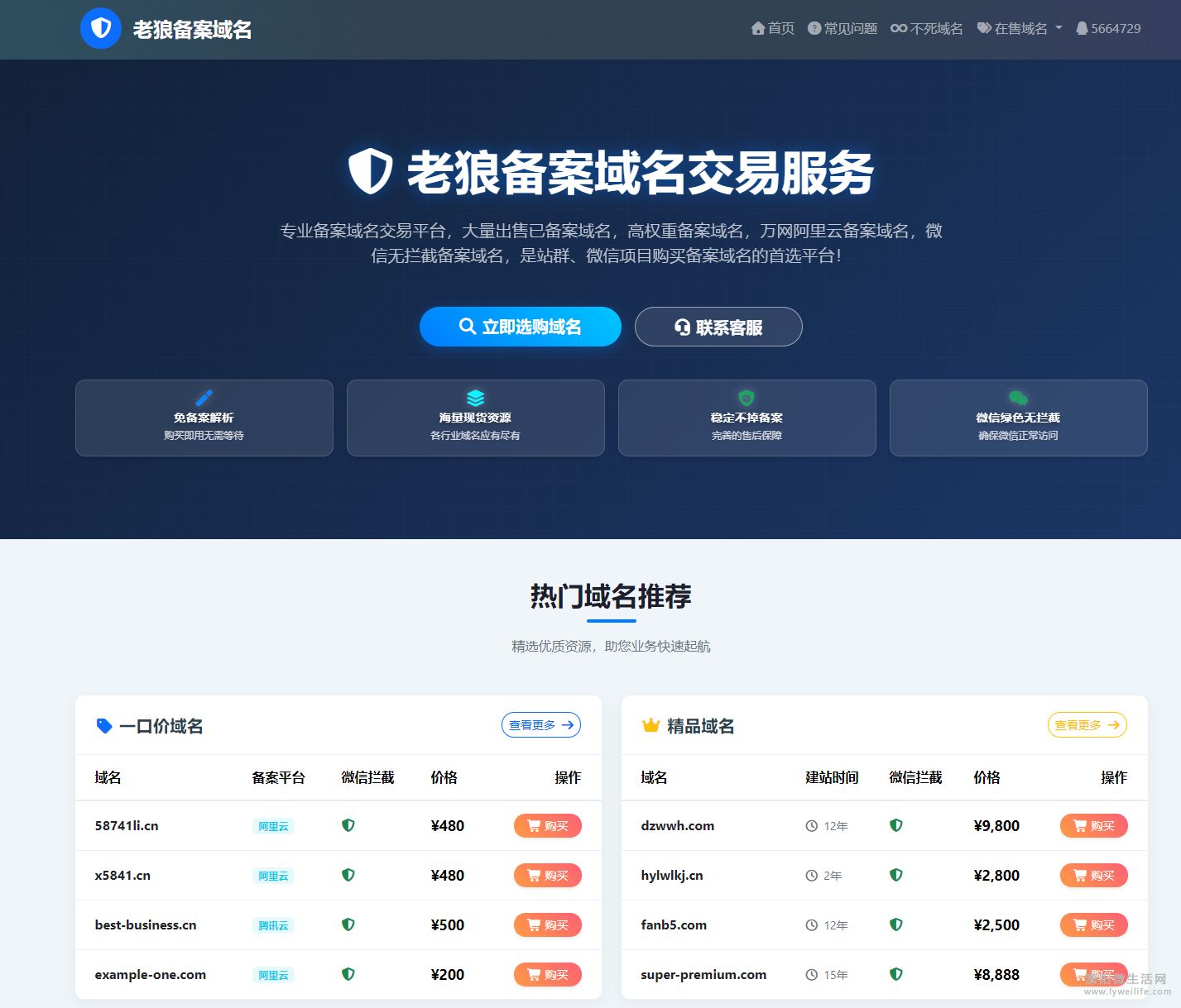 老狼专业备案域名交易平台:站群与微信项目的域名优选方案